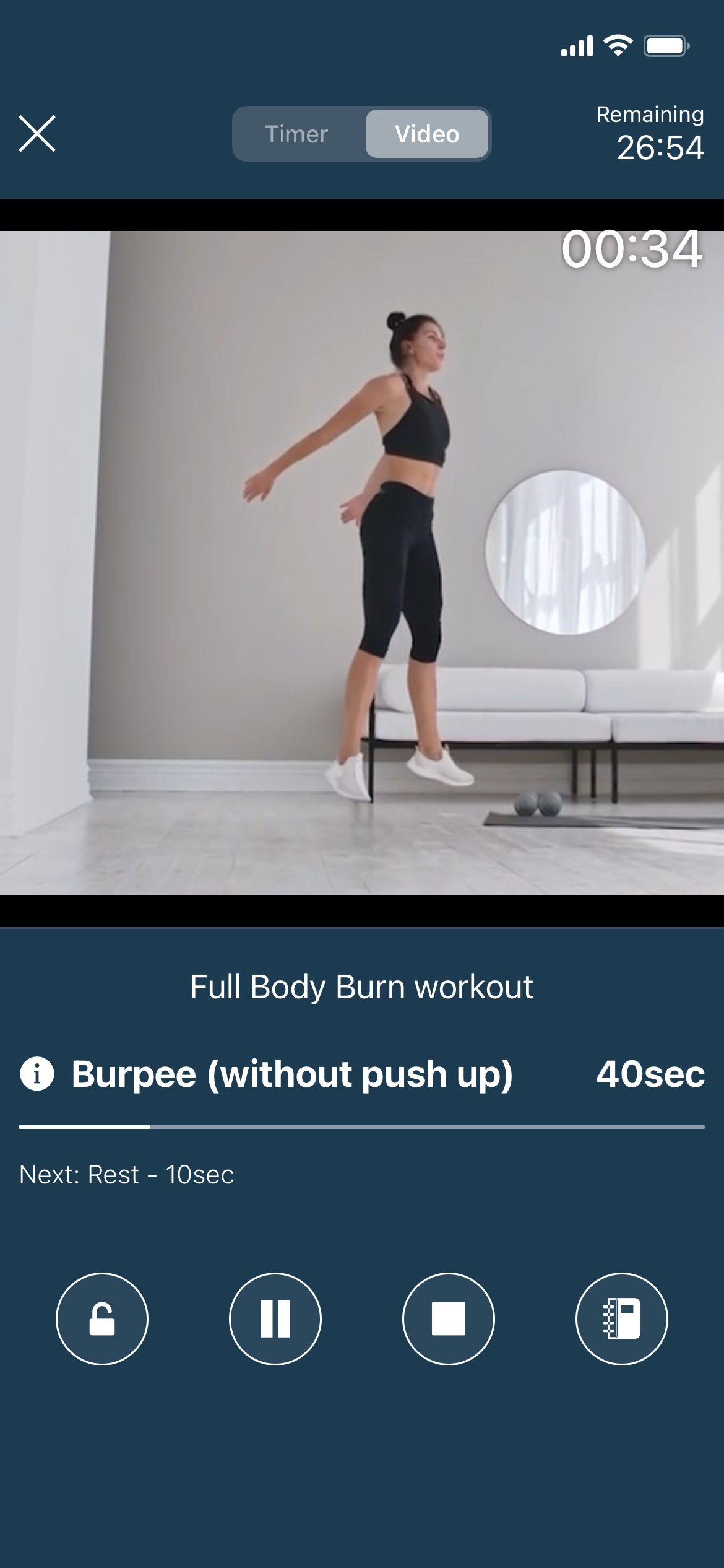 - Sophisticated Settings: Select and set up the desired workout type, whether by repetitions or duration of exercise. Chronofit then compiles all elements to create a comprehensive visual timer, incorporating all necessary information and the corresponding video through the “Video Switch” button.